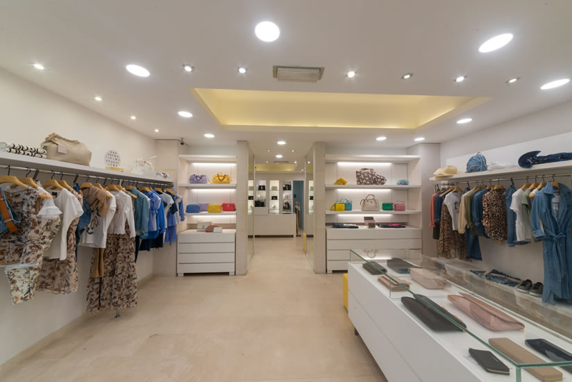 Glamor is the woman boutique of the ScaglioneIschia group. The elegant boutique is located in the center of C.so V. Colonna, under a beautiful arcade with very spacious windows. A total-white environment designed specifically to bring out the collections of the well-known brands present and at the same time offer their customers a chic and relaxing environment where they can spend their shopping time with pleasure. The staff is always available and happy to be able to dedicate their attention in order to offer a disenchanted view of the various collections present.